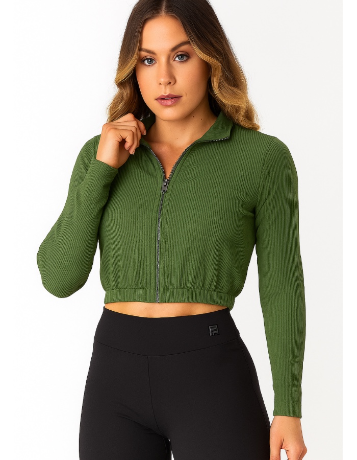 CROPPED MANGA LONGA DRYFIT COM ELÁSTICO E ZÍPER - REF: 1153